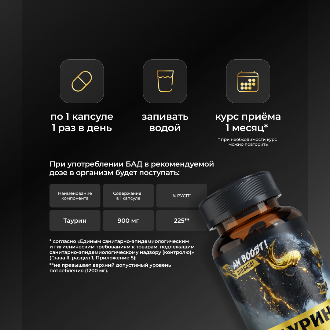 Таурин – это ваша внутренняя сила, ваша опора, которая позволяет идти вперед, не сбиваясь с ритма.