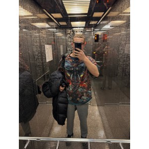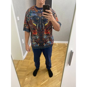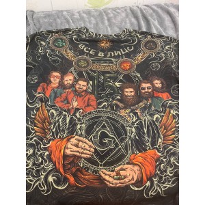 Футболка выглядит очень круто, история еще круче. Цена очень высокая, качество самой футболки как футболки за 1200р, принт хороший. Если вам не жалко денег как мне то покупайте, но лучше купите Креатин!